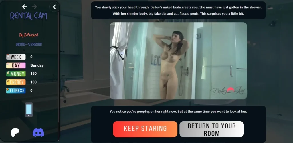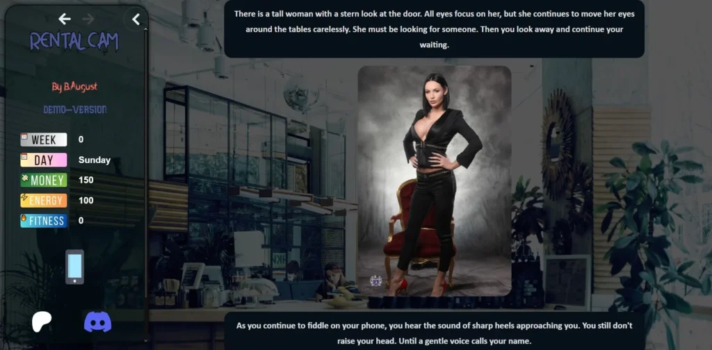 B.August Games released a new game called Rental Cam and the version is 0.1.8. The game’s story is about Recently fired from your job and uncertain about what to do, you receive a message from a college friend you haven’t seen in years. Waiting for him in a café, at first you don’t recognize the breathtaking woman who approaches you. Until you realize she’s your friend you’ve been expecting.